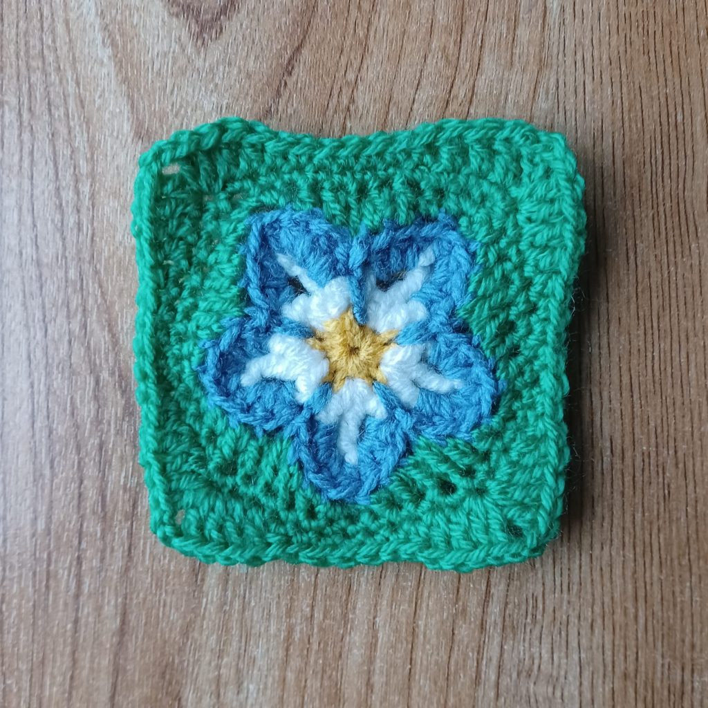 This quilt has been constructed using traditional granny square crochet techniques and is backed with a repurposed bedsheet.