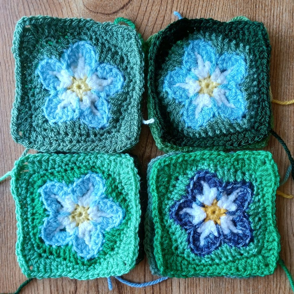 This memorial quilt is made up of 150 crocheted squares, each representing one of the 150 people who have died from Myalgic Encephalomyelitis (M.E.) in the UK between 2001 and 2021.